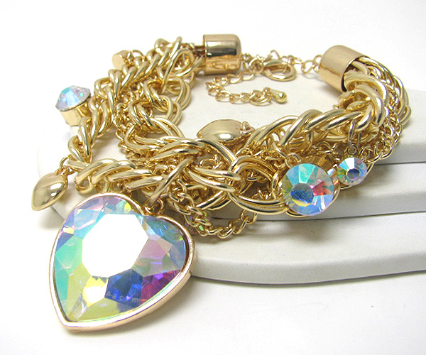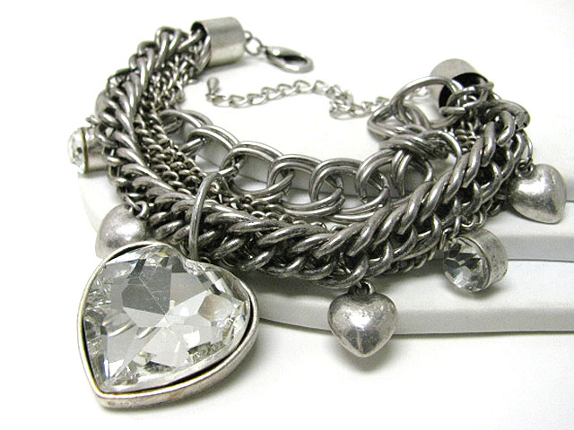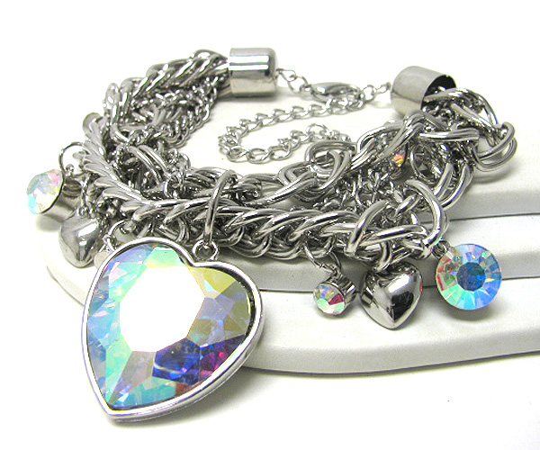 WHOLESALE FACET GLASS HEART CHARM AND MULTI MASSIVE METAL CHAIN BRACELET 375709