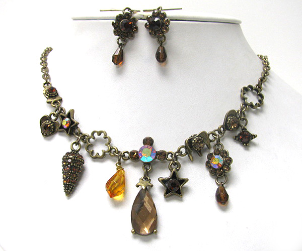 WHOLESALE LUXURY AUSTRIAN CRYSTAL VINTAGE NECKLACE EARRIGN SET 375762