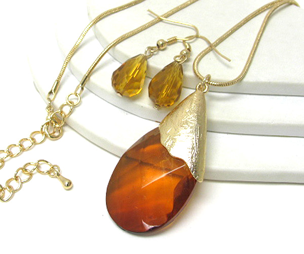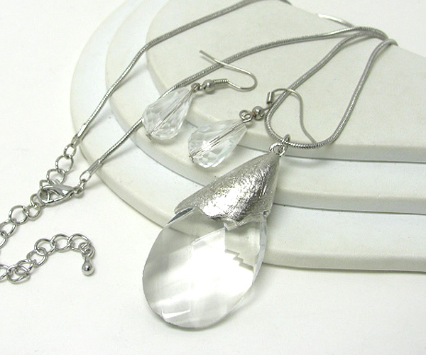 WHOLESALE FACET CRYSTAL AND SCRATCH METAL PENDANT NECKLACE EARRING SET 375773