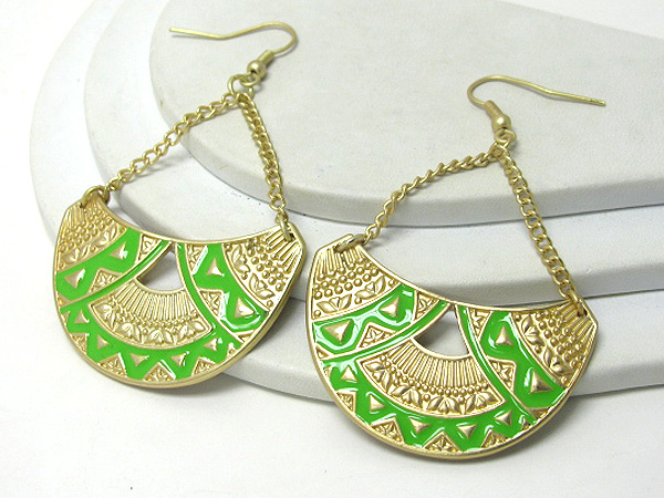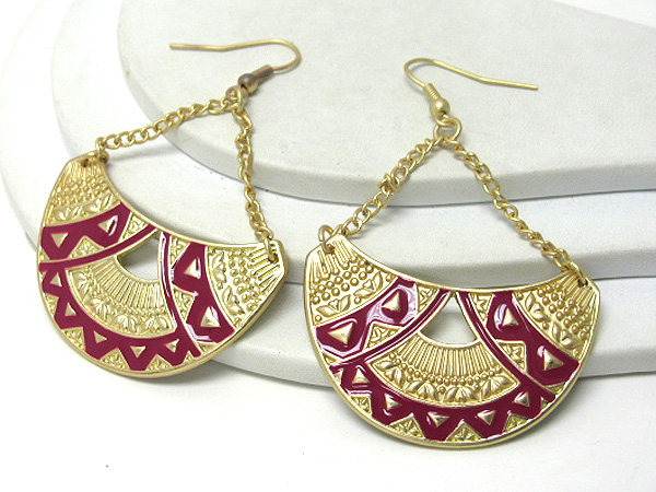 Aztec inspired pattern crescent drop earring -western