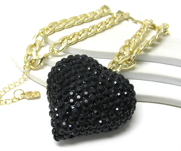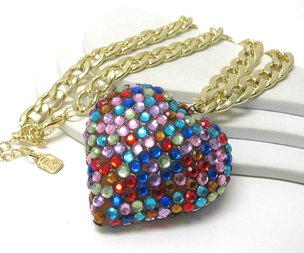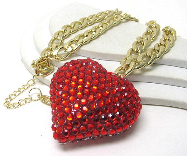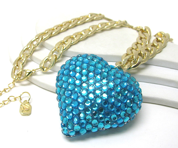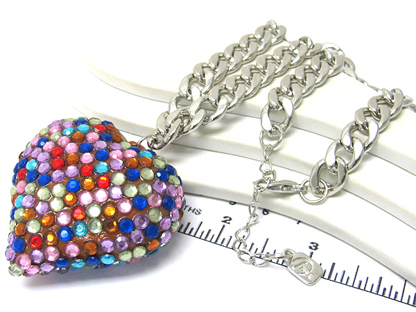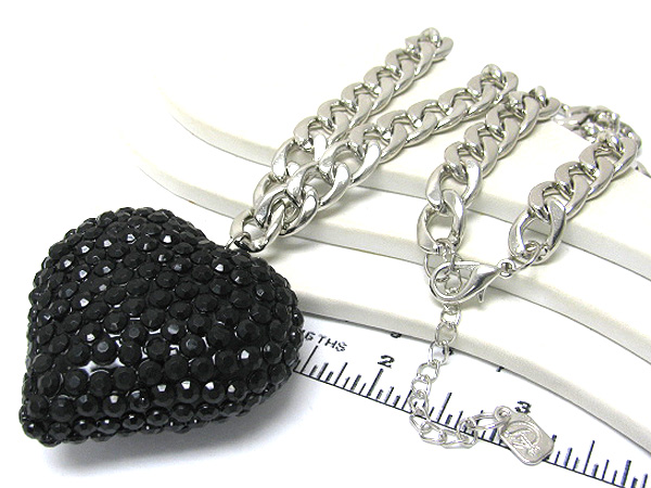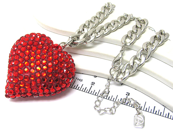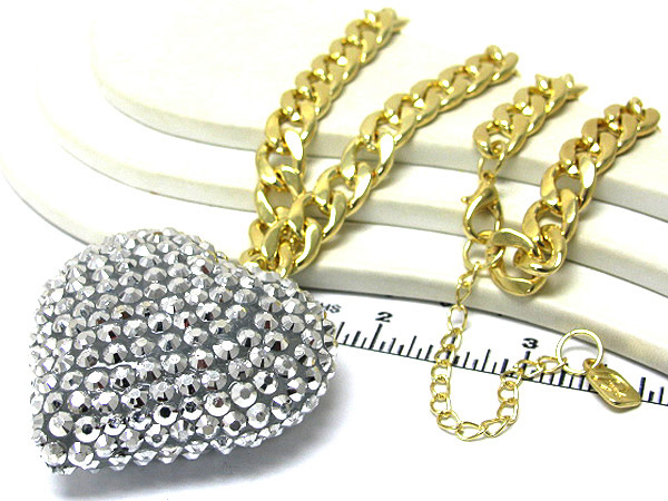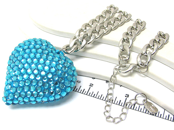 Large crystal heart pendant chain long necklace