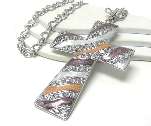 WHOLESALE CRYSTAL AND EPOXY DECO ANIMAL PRINT LARGE CROSS NECKLACE 375965