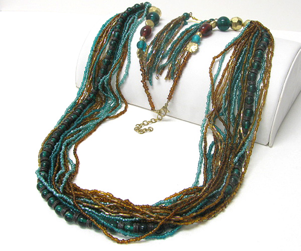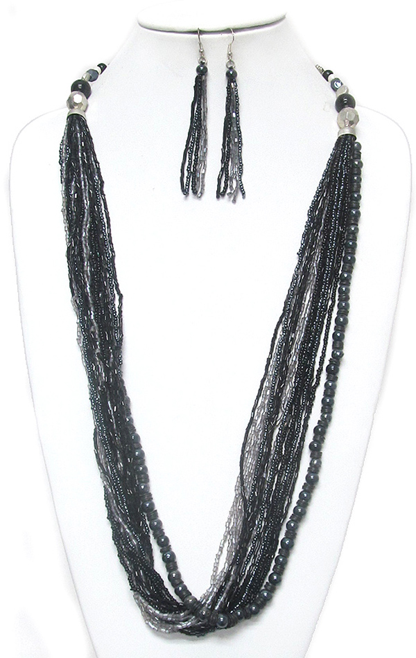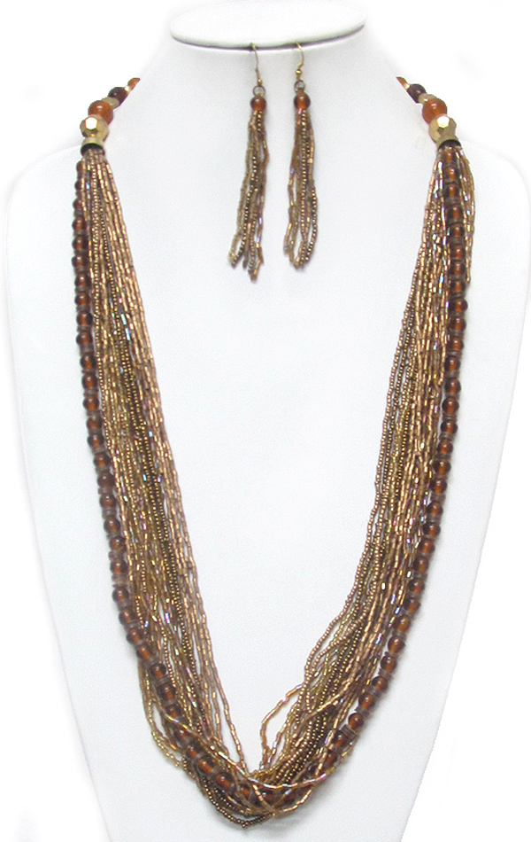 WHOLESALE MULTI LAYER SEED BEADS CHAIN MIX NECKLACE EARRING SET 376117