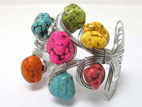 WHOLESALE NATURAL STONE DECO METAL WIRED CUFF BANGLE 376124