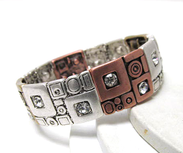 WHOLESALE MULTI SQUARE AND CRYSTAL ACCENT STRETCH BRACELET 376153