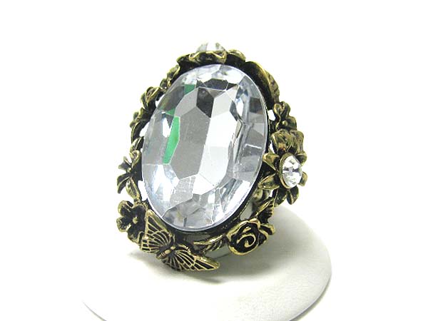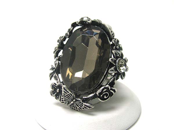 Facet glass and crystal and metal art stretch ring