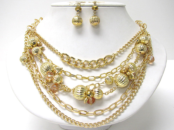 WHOLESALE METAL CHAIN AND METAL MULTI BALL LONG NECKLACE EARRING SET 376350