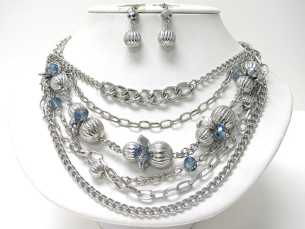 Metal chain and metal multi ball long necklace earring set