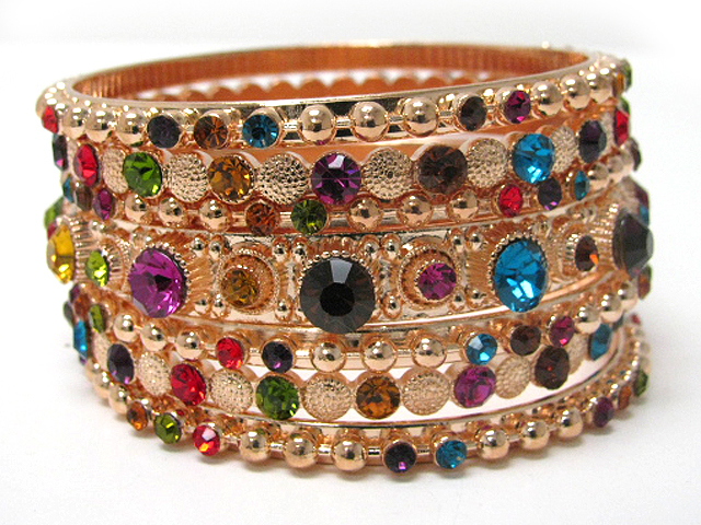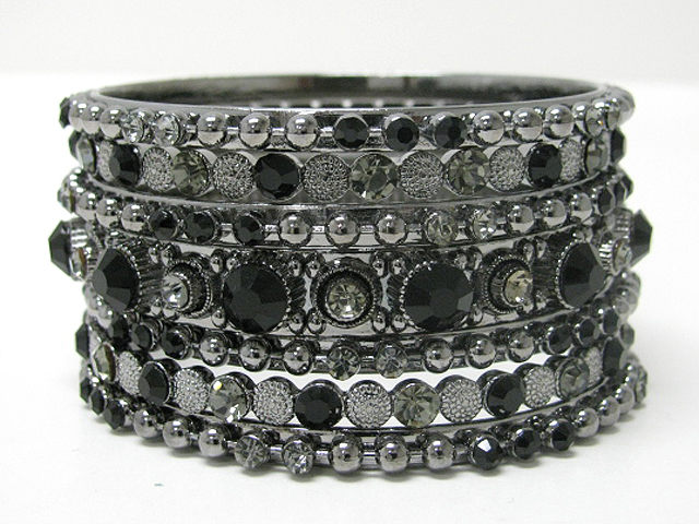 WHOLESALE MULTI CRYSTAL DECO AND MIXED METAL BANGLE SET OF 7 376369