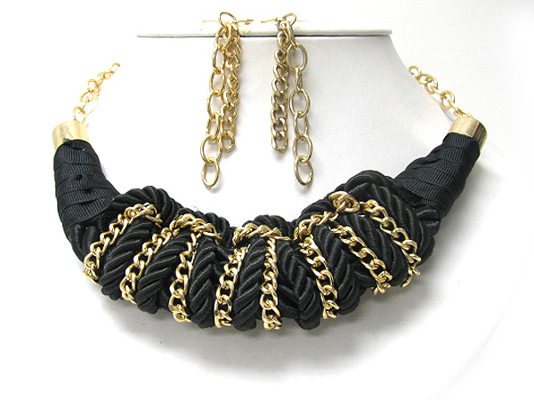 WHOLESALE METAL CHAIN ON SILK CORD TWISTED NECKLACE EARRING SET 376500