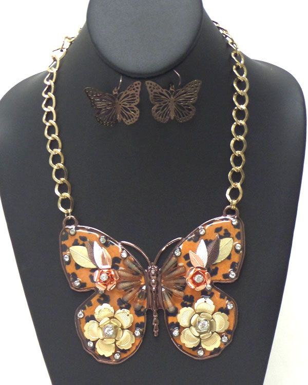 WHOLESALE CRYSTAL METAL FLOWER PRINT ZEBRA INSIDE FASHION LARGE BUTTERFLY NECKLACE EARRING SET 376579