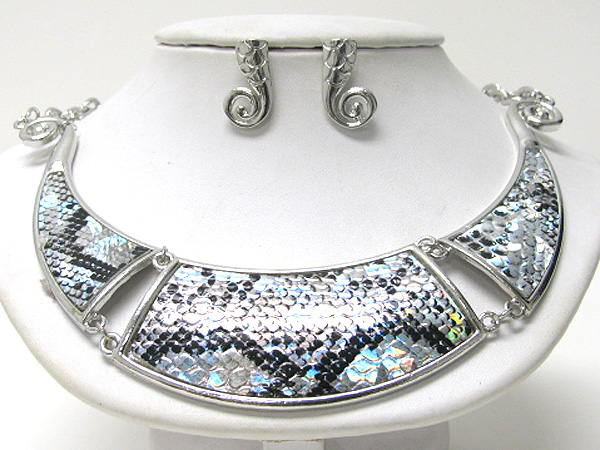 WHOLESALE METAL SNAKE PRINT THREE FRAME CHAIN NECKLACE EARING SET 376714