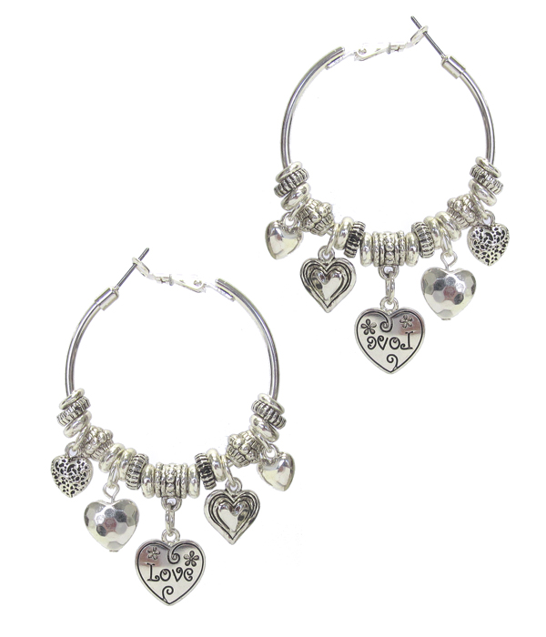 WHOLESALE METAL LOVE HEART CHARM HOOP EARRING - HOOPS 376903