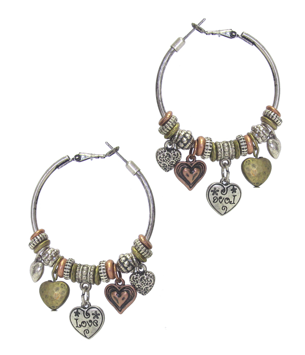 Metal love heart charm hoop earring - hoops