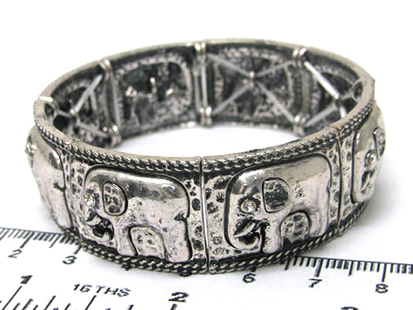 WHOLESALE CHICOS STYLE CRYSTAL EYE METAL PEBBLE MULTI ELEPHANT STRETCH BRACELET 376956
