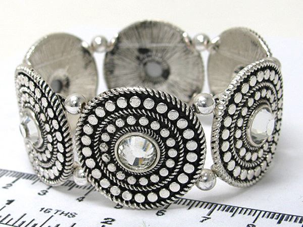 Crystal round multi disk stretch bracelet