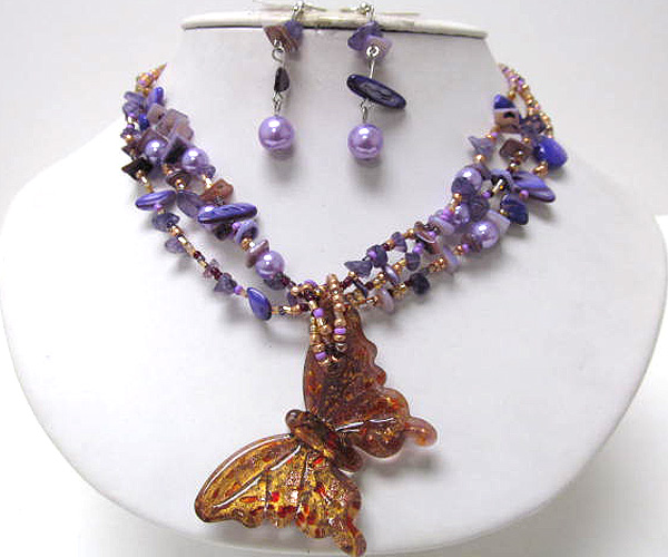 WHOLESALE MULTI SEED BEADS AND MURANO CANDY DISK ON NECKLACE DROP DOWN MURANO BUTTERFLY NECKLACE EARRING SET 376988