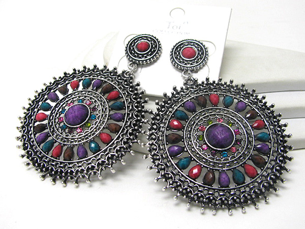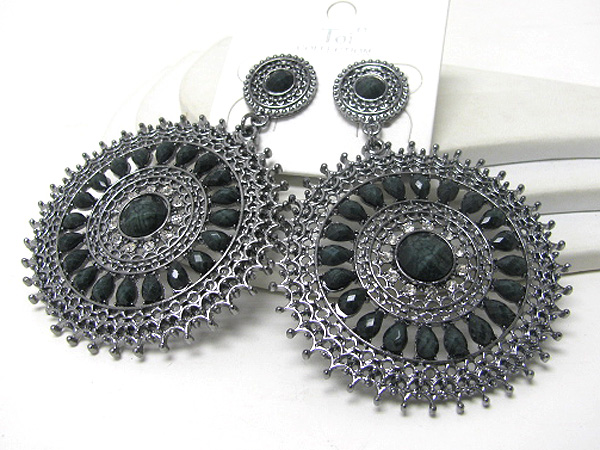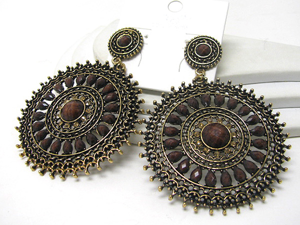WHOLESALE METAL CRYSTAL FILIGREE ROUND DISK EARRING 377109