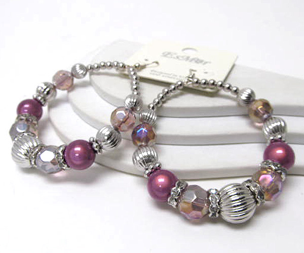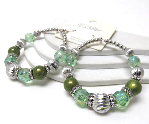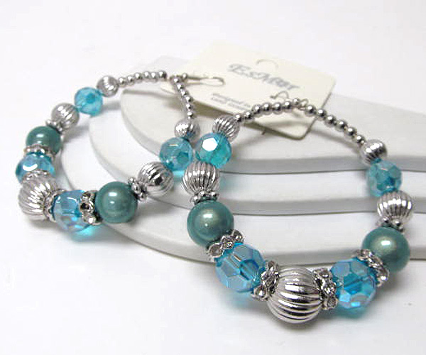 WHOLESALE CRYSTAL GLASS AND PEARL HOOP EARRING - HOOPS 377226