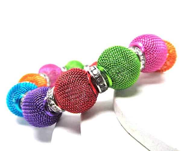 WHOLESALE CRYSTAL RONDELLE AND COLORED METAL MESH BALL BASKETBALL WIVES INSPIRED STRETCH BRACELET 377250