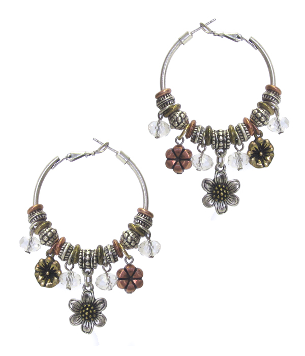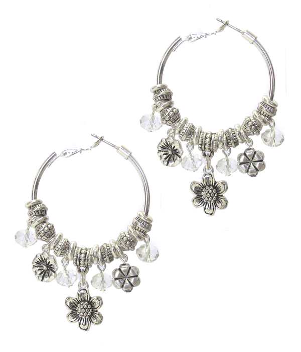 Pandora style flower charm dangle earring