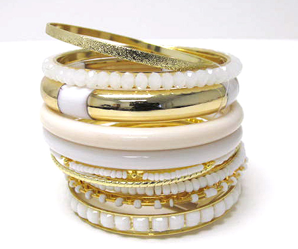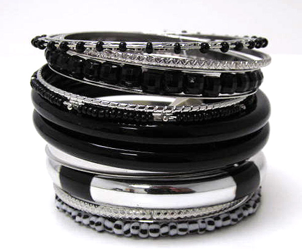 WHOLESALE MULTI SEED BEADS AND MIXED STONE METAL AND WOODEN 12 SET BANGLE 377460