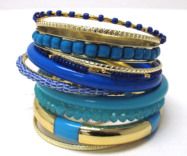 Multi seed beads and mixed stone metal and wooden 12 set bangle