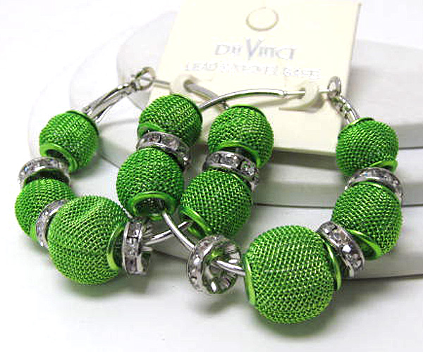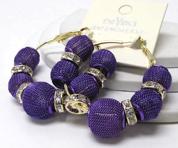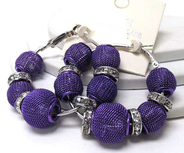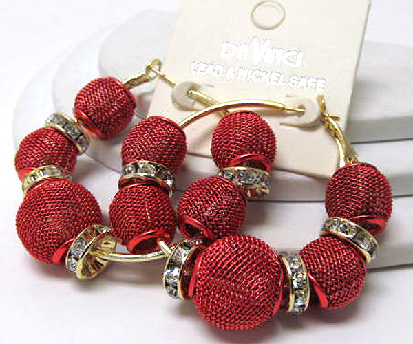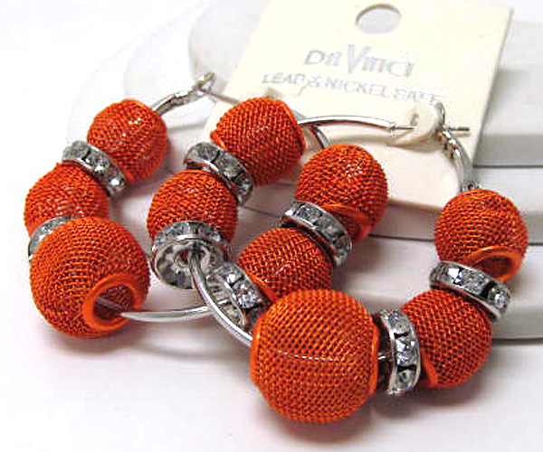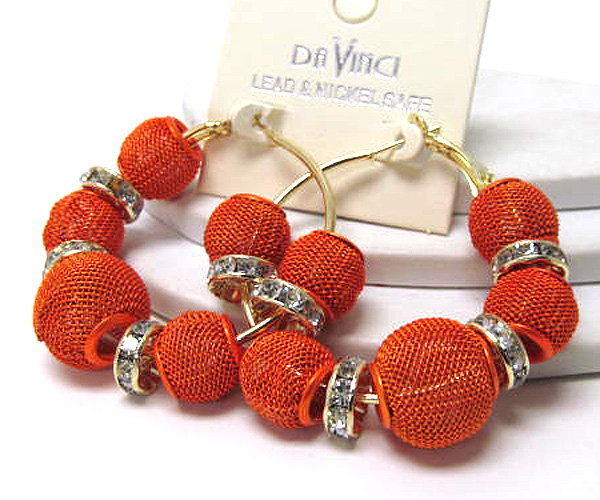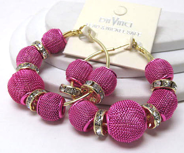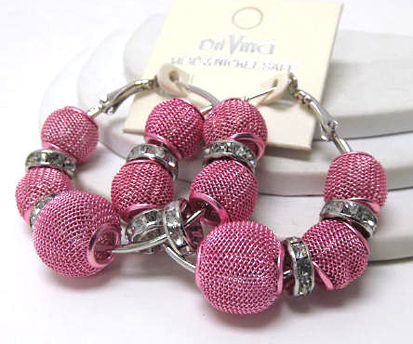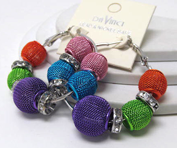 WHOLESALE SMALL HOOP CRYSTAL RONDELLE AND COLORED METAL MESH BALL BASKETBALL WIVES INSPIRED EARRING - HOOPS 377475