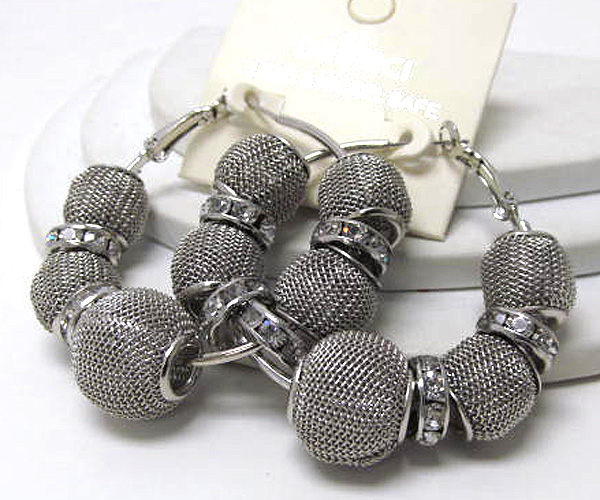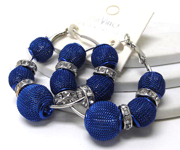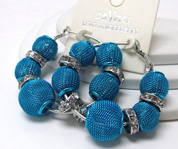 Small hoop crystal rondelle and colored metal mesh ball basketball wives inspired earring - hoops