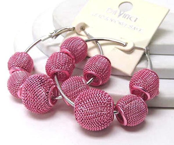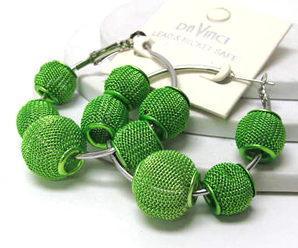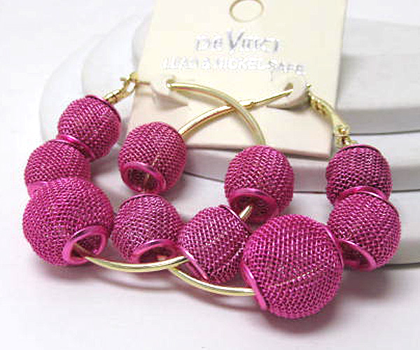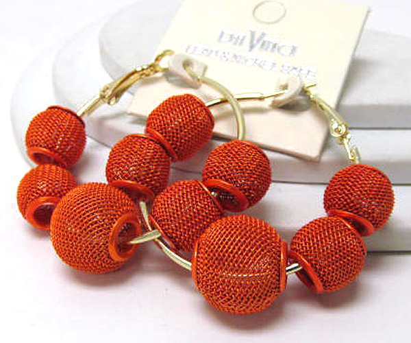 WHOLESALE SMALL HOOP COLORED METAL MESH BALL BASKETBALL WIVES INSPIRED EARRING - HOOPS 377486