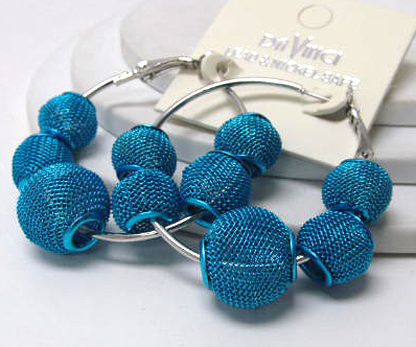 Small hoop colored metal mesh ball basketball wives inspired earring - hoops