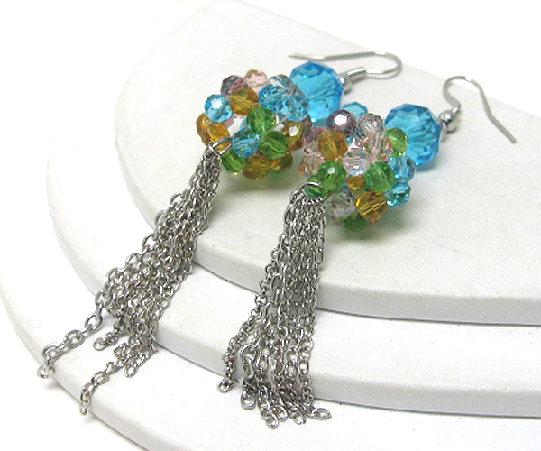 WHOLESALE FACET BEADS AND METAL TASSEL DROP EARRING 377651