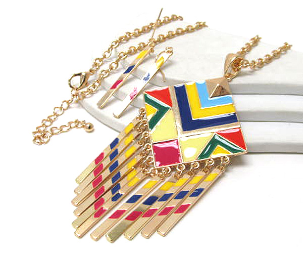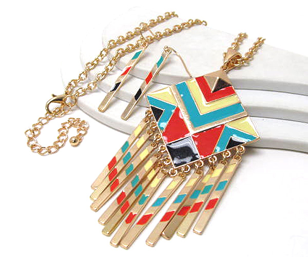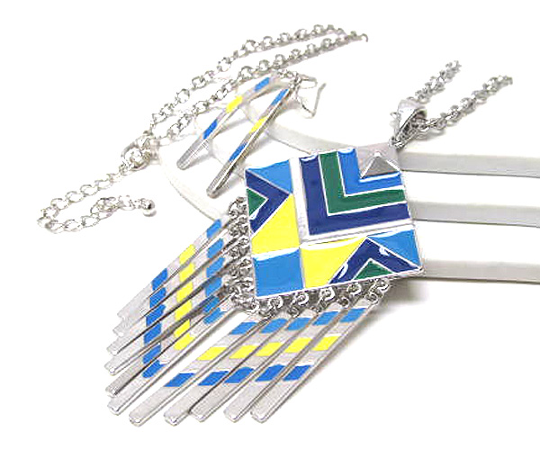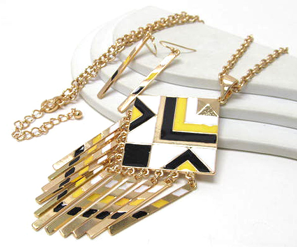 WHOLESALE METAL DIAMOND SPRING WITH DROP MULTI METAL BARS FASHION LONG CHAIN NECKLACE EARRING SET 378088