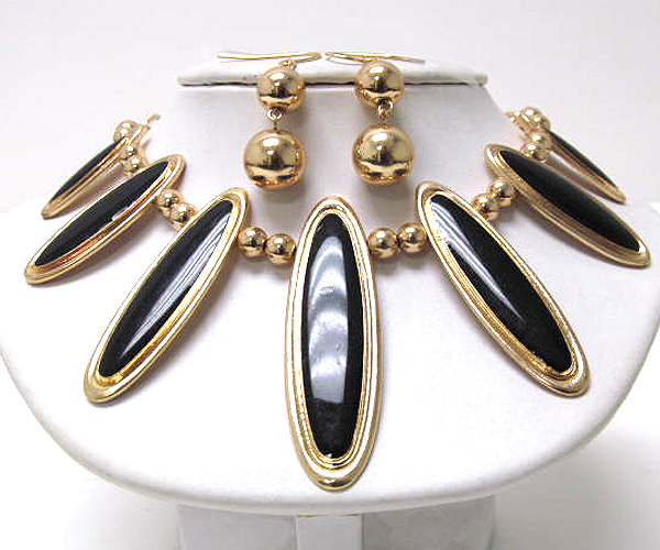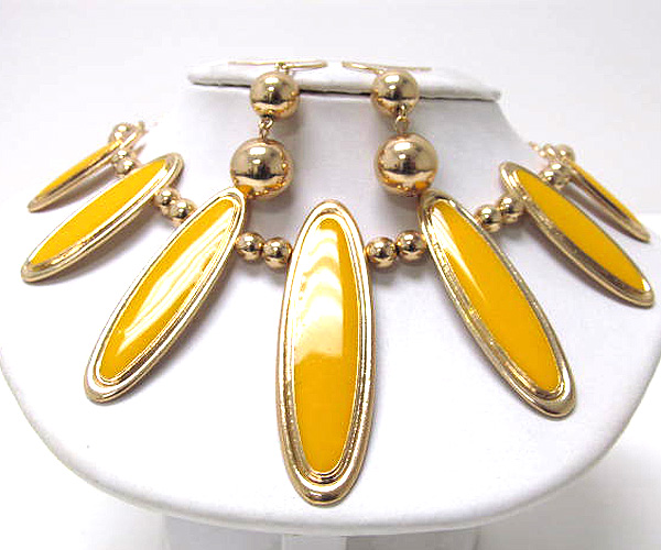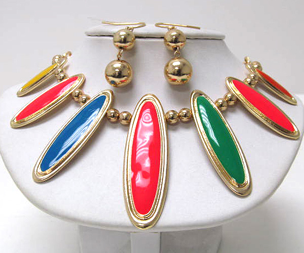 Metal with acryl oval fashion coloful style patern and metal balls necklace earring set