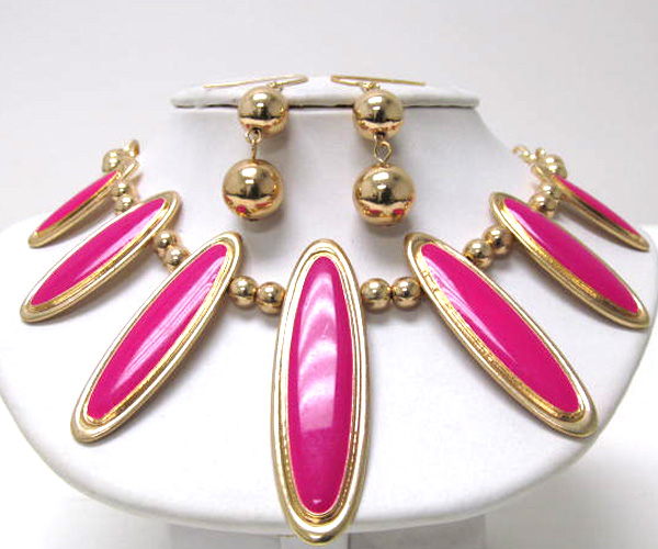 WHOLESALE METAL WITH ACRYL OVAL FASHION COLOFUL STYLE PATERN AND METAL BALLS NECKLACE EARRING SET 378105