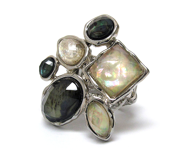 Multi fashion shape shell stone stretch ring