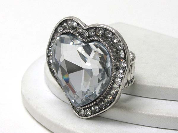 Facet heart glass and crystal deco stretch cocktail ring -valentine