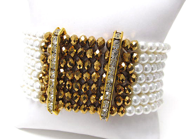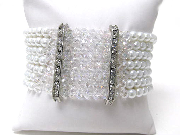 WHOLESALE MULTI PEARL LINE WITH MULTI CRYSTAL GLASS STRETCH BRACELET 378549