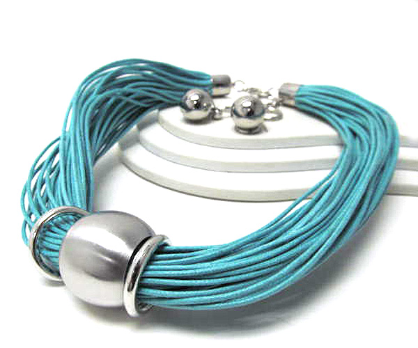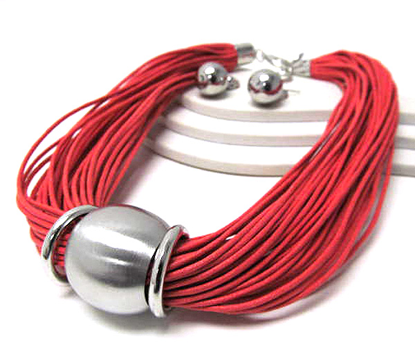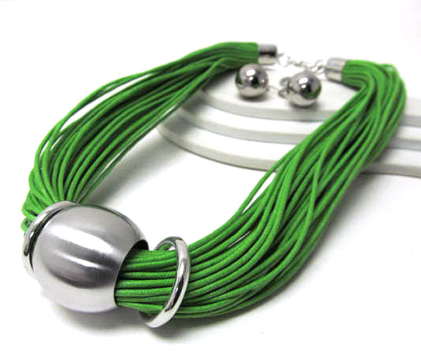 WHOLESALE MULTI FASHION COLOR CORD DROP ROUND METAL LINK WITH RINGS NECKLACE EARRING SET 378748