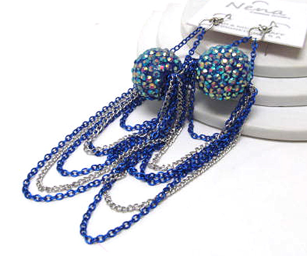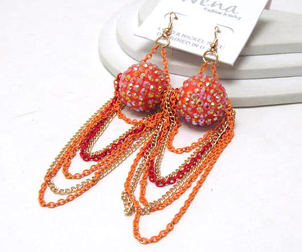 WHOLESALE ONE CRYSTAL FIRE BALL COLORFUL FASHION DROP MULTI CHAIN DROP EARRING 378769