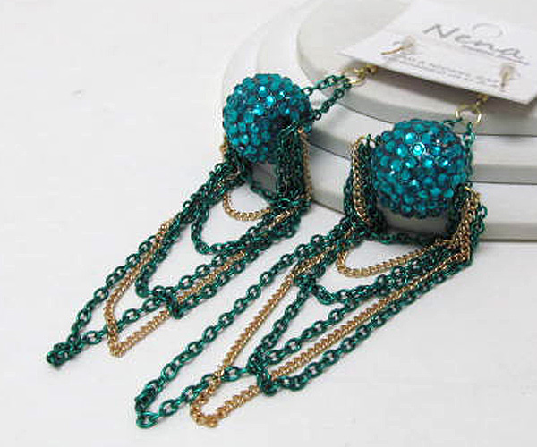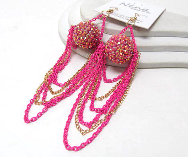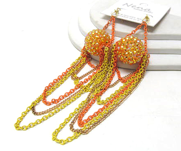 One crystal fire ball colorful fashion drop multi chain drop earring