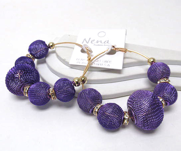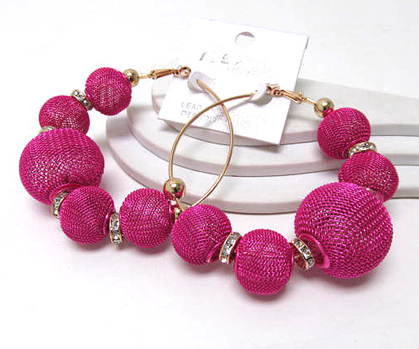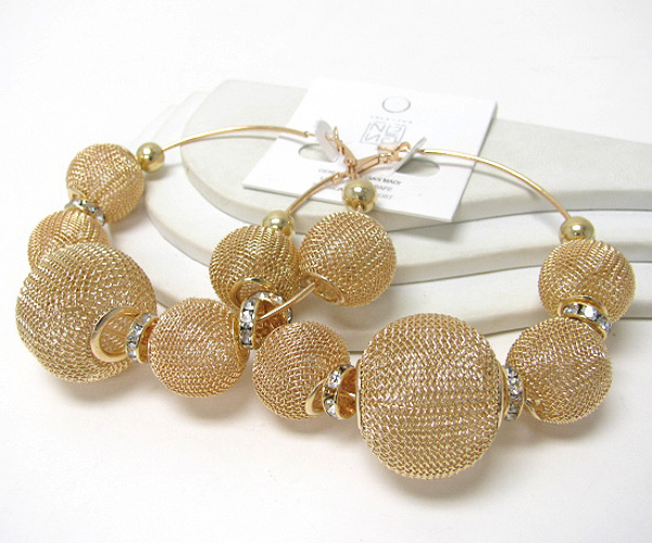WHOLESALE BASKETBALL WIVES METAL MESH BALL INSPIRED HOOP EARRING - HOOPS 378782