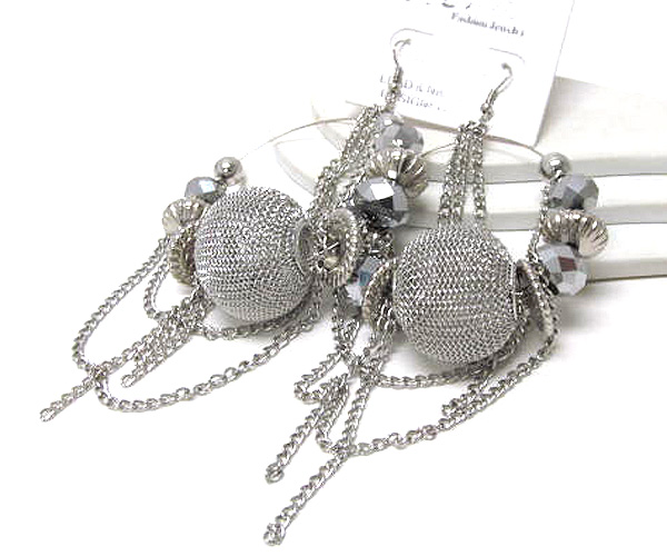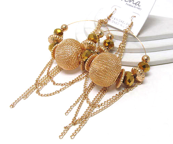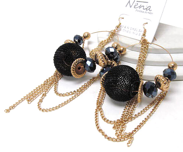 Multi crystal glass and metal balls with chain basketball wives metal mesh ball inspired hoop earring - hoops