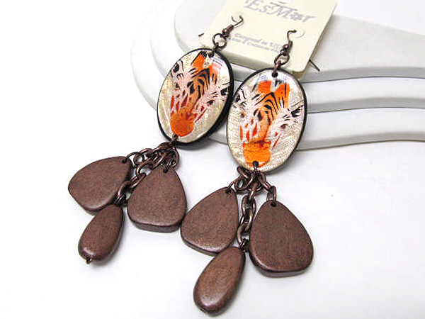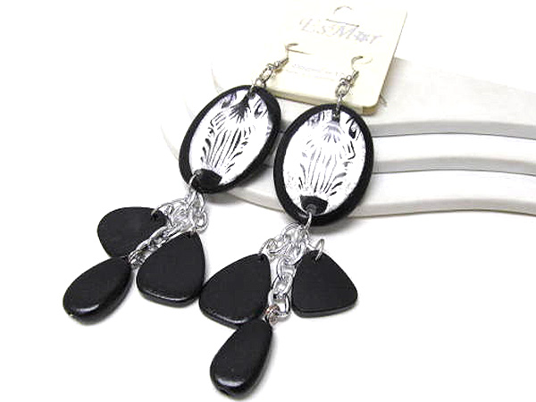 WHOLESALE OVAL LEOPARD PATERN DROP MULTI CHAIN WITH WOODEN TRIAGLE DROP EARRING 378998