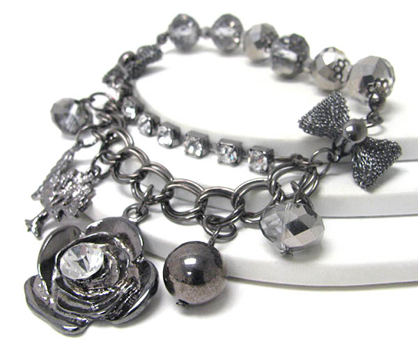 WHOLESALE CRYSTAL CENTER METAL FLOWER AND MULTI CHARM STRETCH BRACELET 379362