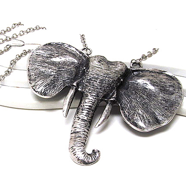 WHOLESALE METAL HAMMERED TEXTERED FASHION ELEPHANT DROP LONG CHAIN NECKLACE EARRING SET 379484