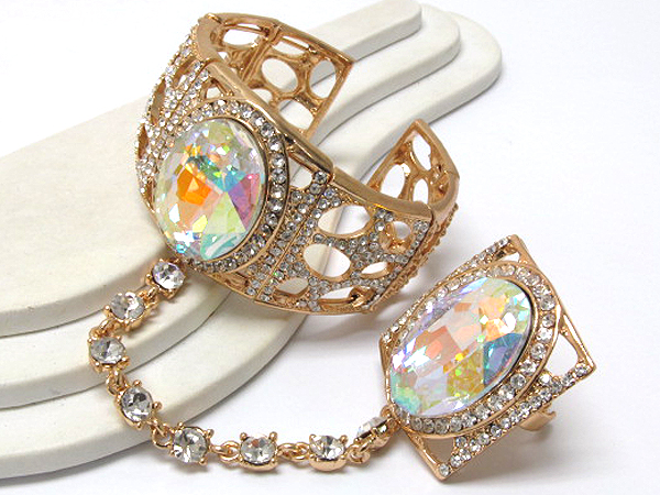 Multi crystal on center oval crystal glass with line patern crystal ring hinge bangle