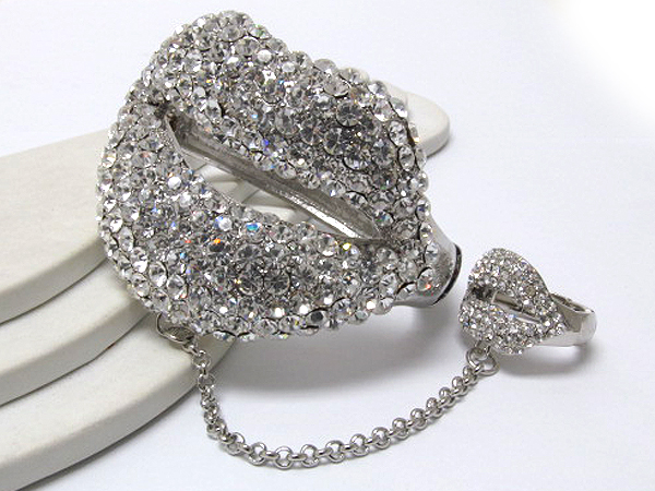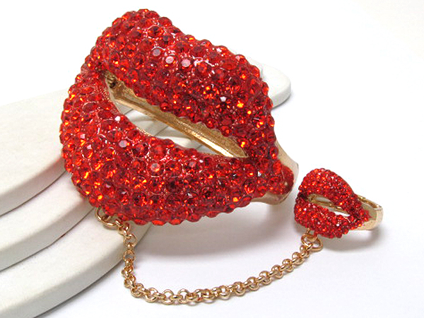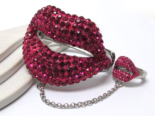 Valentine crystal fashion large lips and chain ring and hinge bangle -valentine