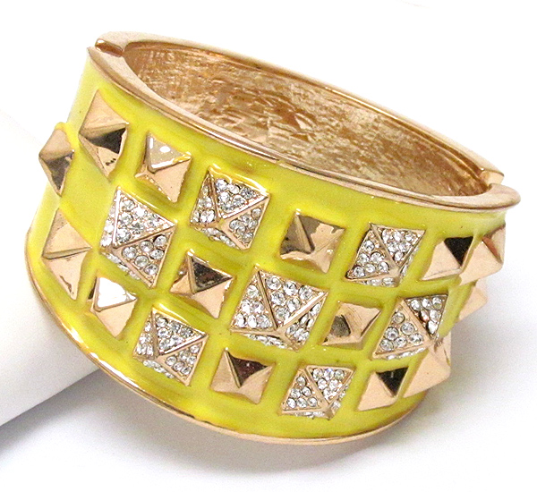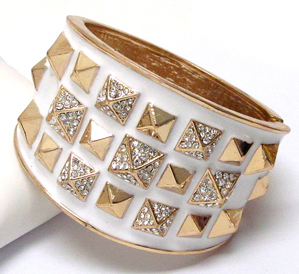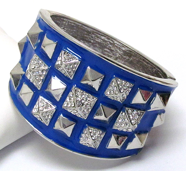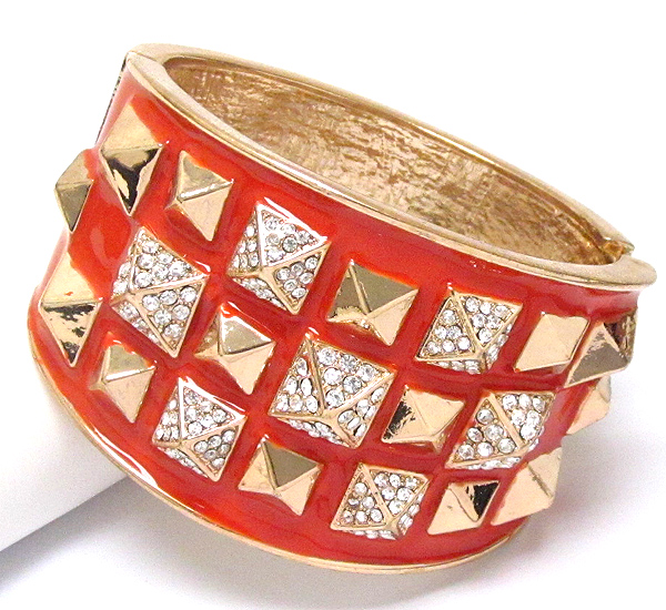 WHOLESALE CRYSTAL AND METAL PATERN FASHION SPIKES HINGE BANGLE 380083