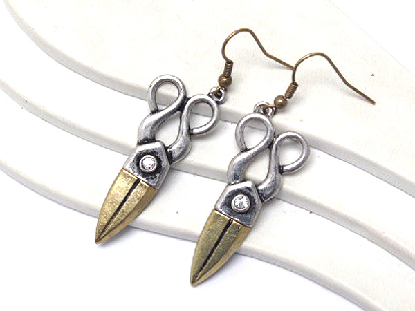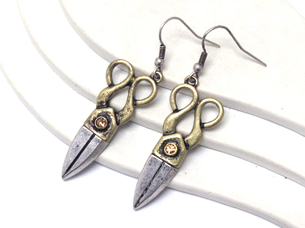 Crystal stud scissors earrings
